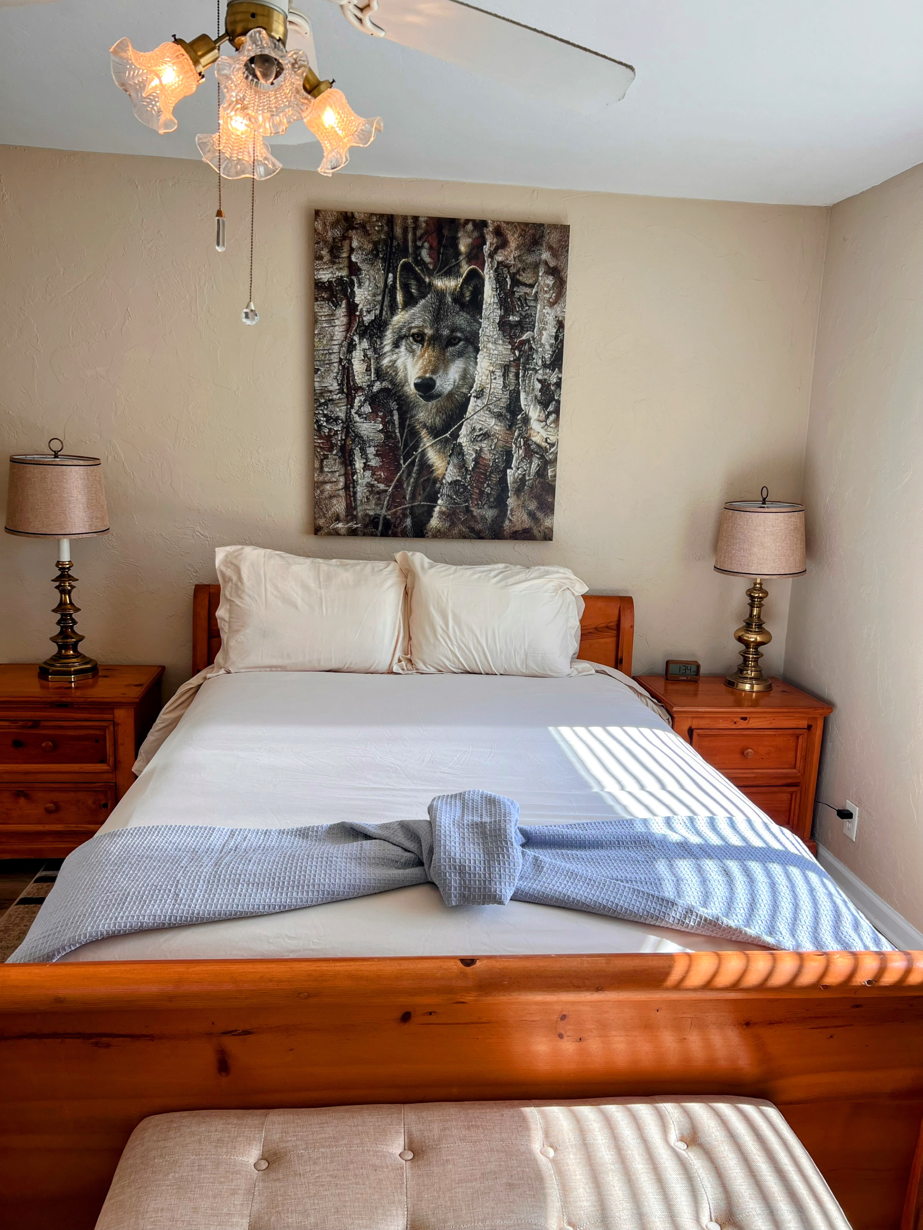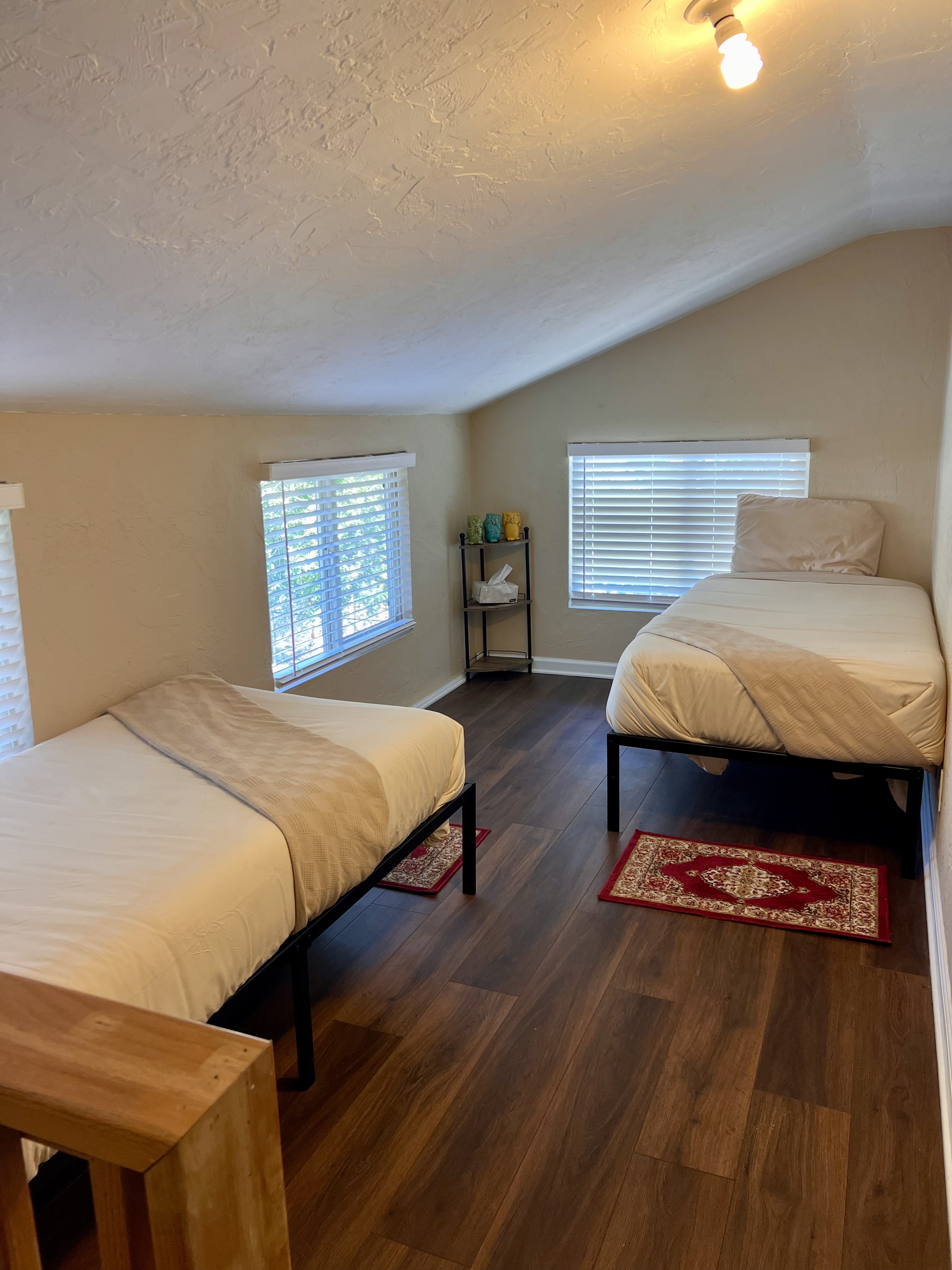 There's a half bath off the kitchen and a washer and dryer next to the pantry. We have an evaporative cooling system, works just as well at Central Air. -The 4th bedroom is the Owl's loft, but the selections don't offer loft as an option, the stairwell leading up to up the loft is narrow, please watch your head.